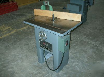 Davis & Wells 1" spindle shaper. 3hp 3Phase motor. New upper and lower spindle bearings. Oil bath spindle with internal oil pump provides constant lubrication to the spindle and bearings. Very nice machine.